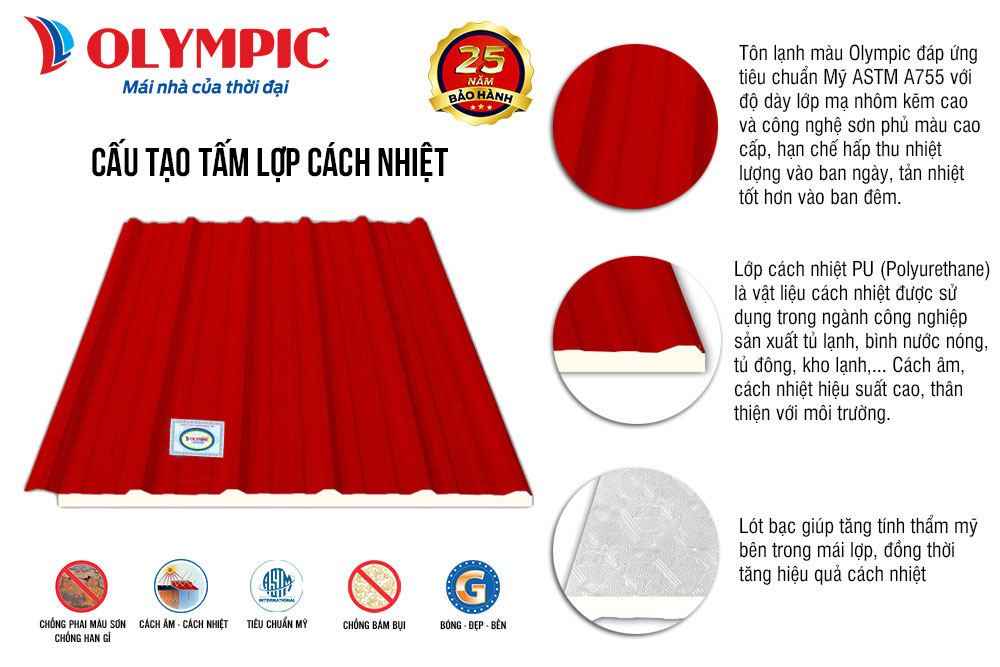 Cấu tạo tấm lợp cách nhiệt Olympic